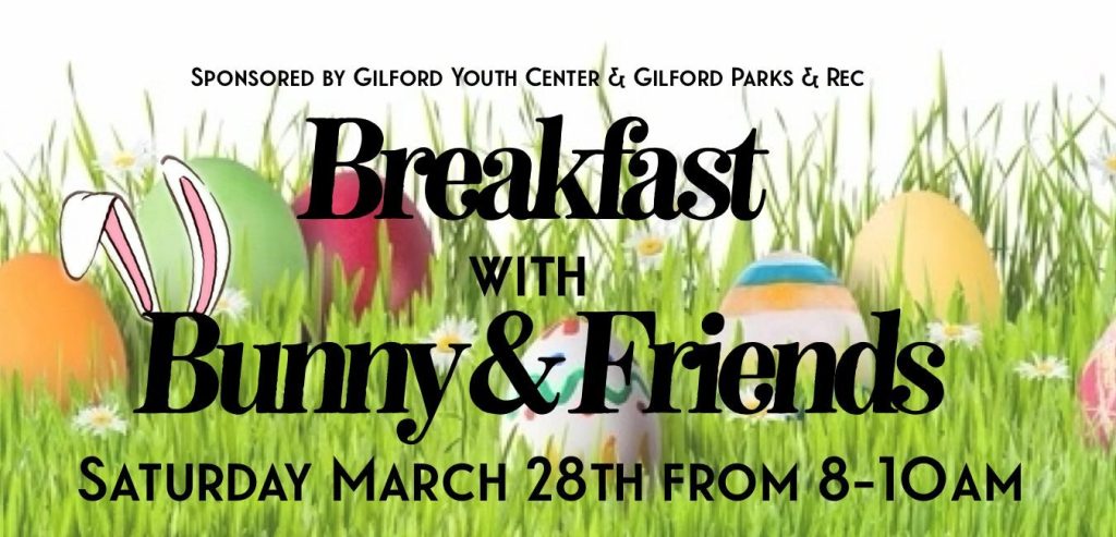 The Gilford Youth Center and Gilford Parks and Recreation are hosting “Breakfast with the Easter Bunny and Friends” on Saturday, March 28th from 8am-10am.